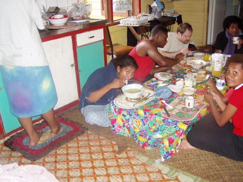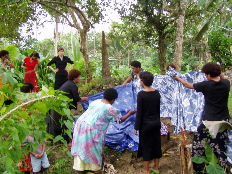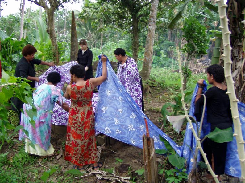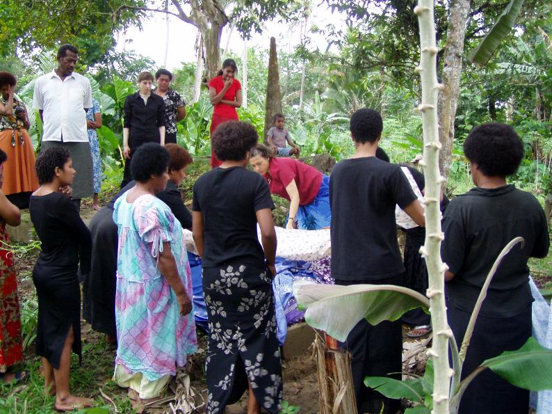 We are decorating my stepfather Isimeli Utovou's grave. He died a year ago and so the family got together to decorate his grave in memorial to him. When we finish here we will look around Rewa some more.