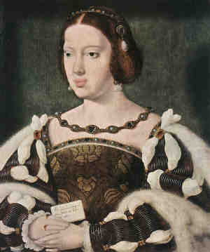 http://www.hull.ac.uk/php/cssbct/cgi-bin/gedlkup.php/n=royal?royal02894 Eleanor married Manuel I the Fortunate of Portugal King of Portugal [15846] [MRIN: 7593], son of Fernando of Portugal Duque de Beja [15750] and Beatriz [15751], in 1518. (Manuel I the Fortunate of Portugal King of Portugal [15846] was born on 1 Jun 1469 in Alcocheta and died on 13 Dec 1521 in Ribeira Palace, Lisbon, Kingdom of Portugal and the Algarves.). The cause of his death was Died of Plague. Eleanor next married Francis I of France de Valois King of France [13886] [MRIN: 8117], son of Charles de Valois Duc Angoulême [13887] and Louise de Savoie [13888], on 8 Jul 1530. (Francis I of France de Valois King of France [13886] was born on 12 Sep 1494 in Cognac, France, died on 31 Mar 1547 in Rambouillet, France and was buried in Saint Denis Basilica, Paris, France.) |