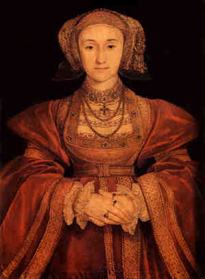 http://www.hull.ac.uk/php/cssbct/cgi-bin/gedlkup.php/n=royal?royal00853   Anne married Henry VIII Tudor King of England [13222] [MRIN: 8692], son of Henry VII Tudor King of England [2134] [9CND-QGL] and Elizabeth of York Plantagenet Queen of England [3105] [9HHT-713], on 6 Jan 1540 in Greenwich, England. (Henry VIII Tudor King of England [13222] was born on 28 Jun 1491 in Greenwich Palace, Kent, England, died on 28 Jan 1547 in Whitehall Palace, London, England and was buried in St.George's Chapel, Windor Castle, Windsor, Berkshire, England.) |