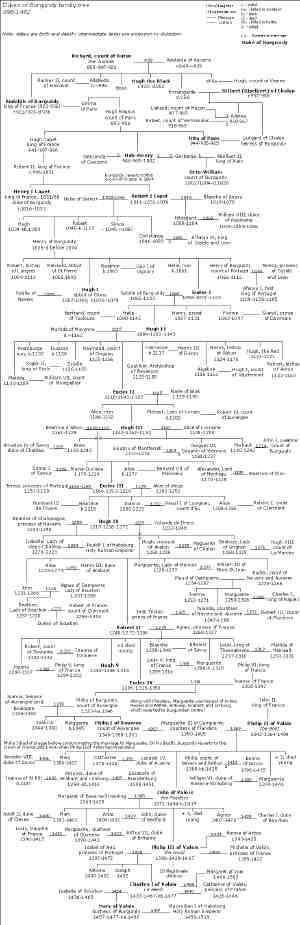• Acceded: Count of Autun, 880. was Count of Autun from 880 and the first Margrave and Duke of Burgundy . • referred to as: duke, 890. He eventually attained suzerainty over all the counties of Burgundy save Mâcon and by 890 he was referred to as dux (duke) and by 900 as marchio (margrave). By 918 he was being called dux Burgundionem or dux Burgundiae • Acceded: marchio (margrave), 900. He eventually attained suzerainty over all the counties of Burgundy save Mâcon and by 890 he was referred to as dux (duke) and by 900 as marchio (margrave). By 918 he was being called dux Burgundionem or dux Burgundiae • referred to as: dux Burgundionem or dux Burgundiae, 918. He eventually attained suzerainty over all the counties of Burgundy save Mâcon and by 890 he was referred to as dux (duke) and by 900 as marchio (margrave). By 918 he was being called dux Burgundionem or dux Burgundiae Richard married Adelaide of Auxerre [5419] [MRIN: 1713], daughter of Conrad II Count of Auxerre [5420] and Waldrada (Wieldruth and Vendrie) of Worms [8008], in 888. (Adelaide of Auxerre [5419] was born about 860 and died in 921.) |